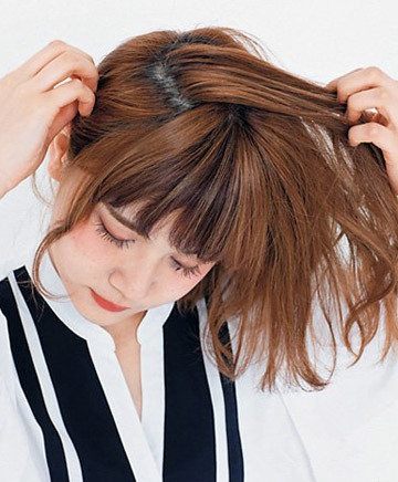 第一步:先用梳子将短发梳理通顺,然后用手将整个头发分成8:2,将8分一侧的耳朵上面的头发向左梳理。