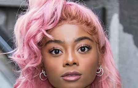 玫瑰金色根与泡泡糖粉红色搭配,再加上一个高扎的半扎发,看起超级**,Skai Jackson逊演绎起来就像是美国漫画里的人物。