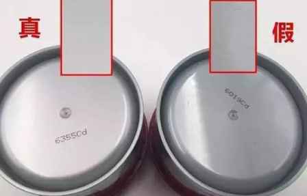 正品表面为光滑的浅灰色,假货偏向深灰色;正品中间凹孔较深且边缘干净,假货凹空较浅附近有不自然的塑料纹路。