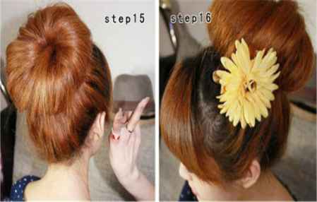 第四步:用手稍稍将翻转过来的头发拉扯蓬松,这样会更自然一点。