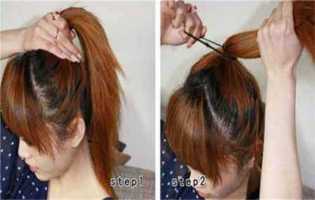第三步:然后就马尾从洞中翻转过来,翻转后就是图中这样子。