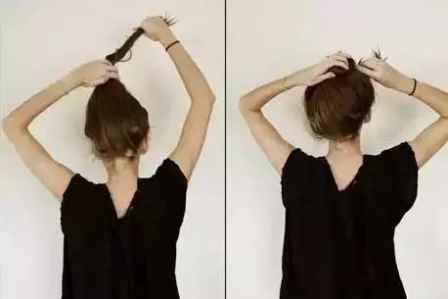 第一步已经完成,接下来就是扎出好看的“空气丸”了;头发梳顺后,直接用手扎出来的才会有空气感和蓬松感。