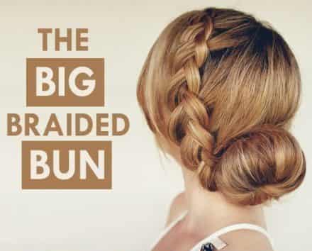 步骤二:编至左耳下方,将右侧松散头发绑一个马尾靠近左侧。