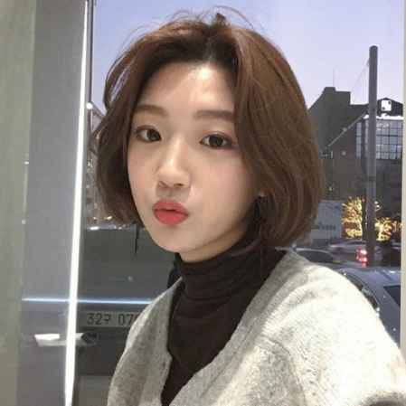 百搭款棕色也适合短发染,发色清新甜美还显白,配上空气刘海之后可减龄了,看起来就像是十八岁**。