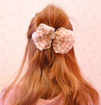发型点评:长发+半**头果然很时髦好看,一半头发扎起饱满**头一半披散长发,既俏皮**又显很唯美撩人,配上大大的蝴蝶结发饰,可甜美吸睛了。