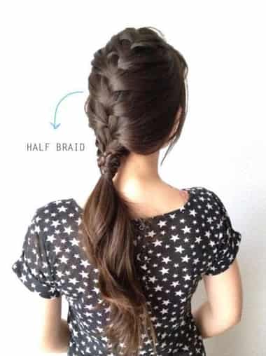 Step8:用一个小的皮筋将辫子固定起来,收紧所有的头发。