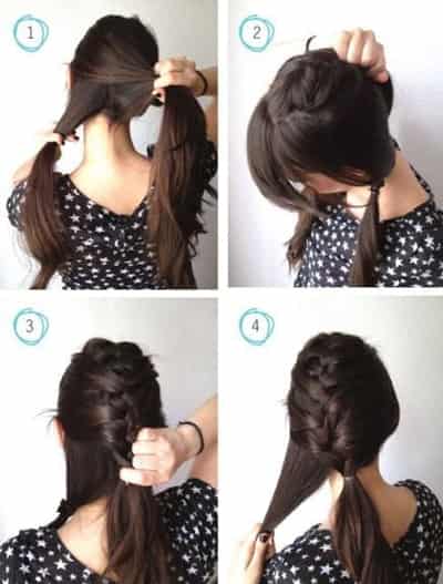 Step2:把头顶上方区分出来的头发开始编辫子,如图。