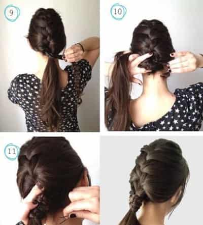 Step6:编到尾部要编的仔细一些,尽可能的把所有头发都编起来。