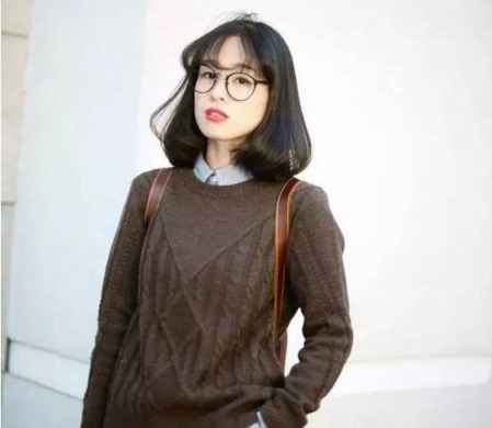 与刘海相搭配的中短发很显清纯感,齐眉平刘海配上齐肩发温暖时尚,冬天搭毛衣超**呢。