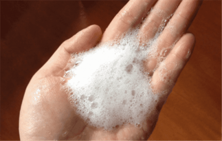加入少量清水之后,能够很容易的打出泡沫,泡沫比较丰富。