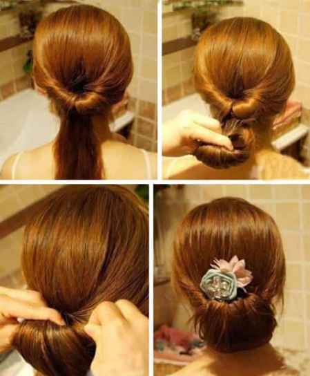 步骤一:首先把所有的头发扎成一个简单的马尾辫,在辫子中间开一个洞,把头发塞进去,拉出来,效果如图所示。