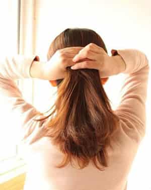 STEP 2:将头发扎成一个马尾,不用扎太高,就在耳根的地方即可。