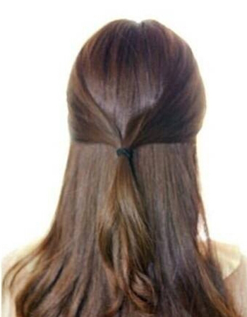 把头发梳顺,取出一部分耳朵两侧的头发,把它们用皮筋扎到后面去。