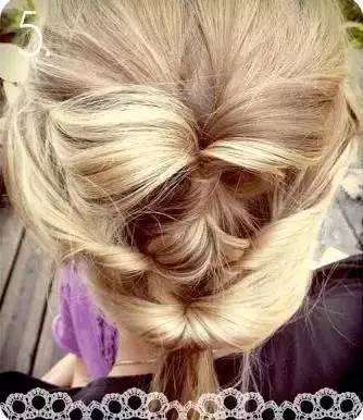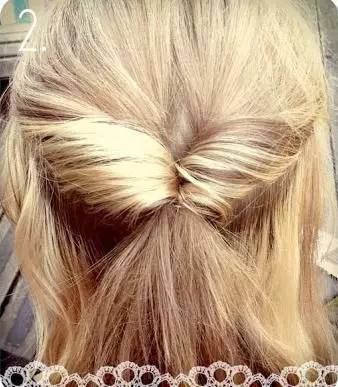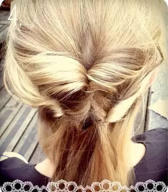 Step 2:将绑好的头发向上翻转,并从中间穿过来。