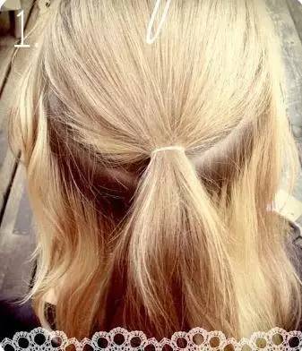Step 1:将头发分为上中下三部分,最上面的头发先用皮筋绑起来。