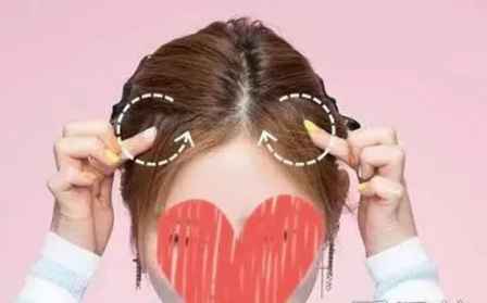 1.将头发全部扎起来后,用两根食指在M字区域附近打圈揉搓,将碎发抓下来。