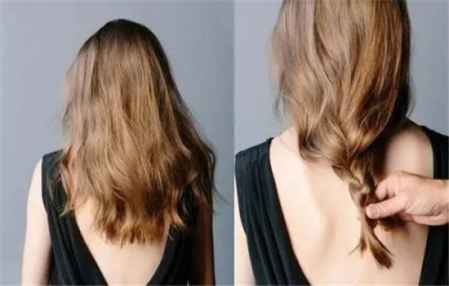 第一步:先用吹风机将头发吹蓬松,然后从耳后方取一小束头发进行扭转。