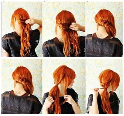 步骤5:用橡皮筋固定时,留下右侧耳际处的一束发。