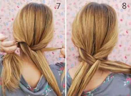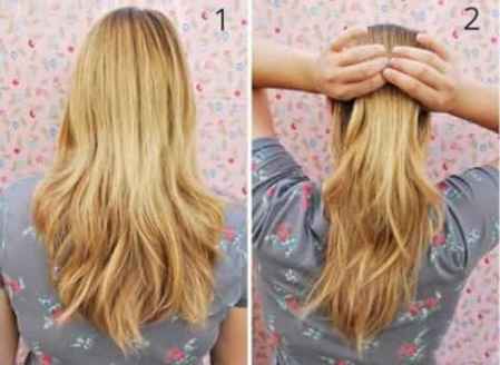 Step5、将右边的那股发束放在旁边的那股发束上面;