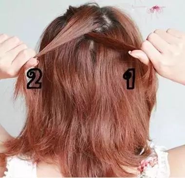 步骤一:从后脑顶挑出两束头发,分为1和2。