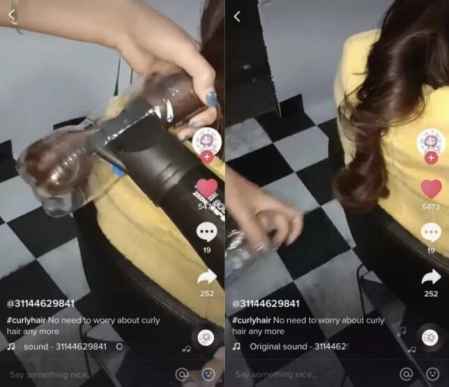 这是最近抖音上,流行的免费卷发法,只要一个矿泉水瓶+吹风机就可以搞定。
