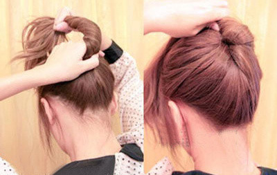 step5:调整好固定的位子,然后再来打理上面及外面的头,将头发梳松散,就能营造出蓬松的感觉,从后面看特别的好看!