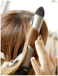 5、接着就是将头发制造蓬松的效果,做出外卷之后,就用手把头发拨松。