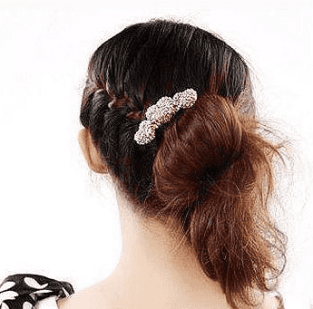 第三步:在编好的发辫上别上发饰,这样就可以完成一款辫子马尾!也可以继续往下弄成花苞头扎发,看看吧。