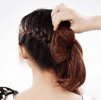 第五步:将扎好的马尾旋转到上面,塑造出花苞头的样子,然后的用黑色小发夹固定。