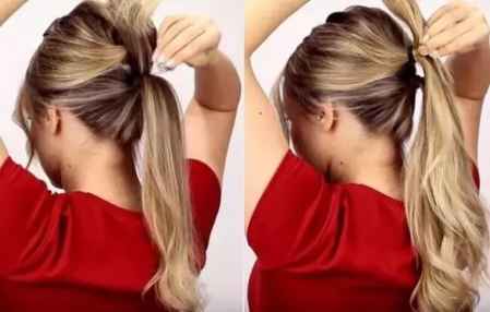 将每个马尾分成两股,