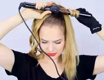 绑一个超高马尾再开始卷发,