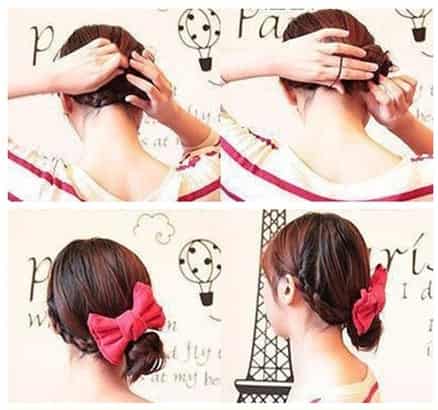 步骤9-10:最后配戴一款大一点的蝴蝶结发饰,就完成了。