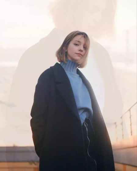 发尾微波短发的卷发弧度只有一点点,所以看起来自然感是很强的,参考下图AngelinaDanilova的穿搭,搭配上一个适合发色的贝雷帽也是美的。