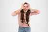 时尚看点:淡金色长发在发尾渐变为桃红色的长卷发型,既个性又吸睛,微卷的发尾和微中分的刘海让女生的脸看起来更小更尖。