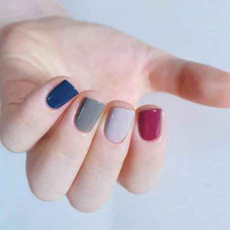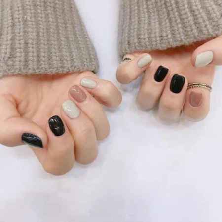 多色混搭的跳色美甲确实挺洋气的,色调搭配得好,而且还显手白,就是是纯色美甲也一样好看。