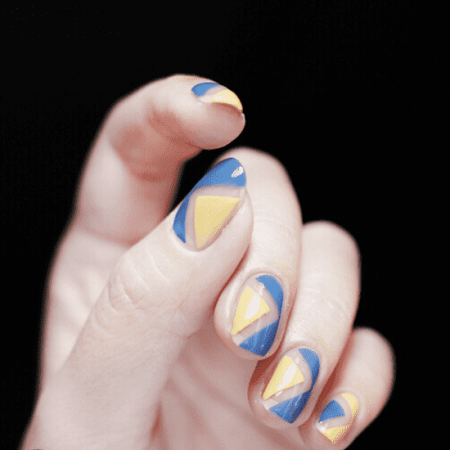 法式款贴纸美甲,**与蓝色的撞色青春活力满分!款式简单,时尚有看点哦~