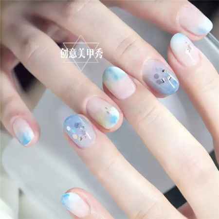 春天到了,最适合还是浅色的美甲,这款蓝色晕染渐变美甲,给人一种非常梦幻的感觉。