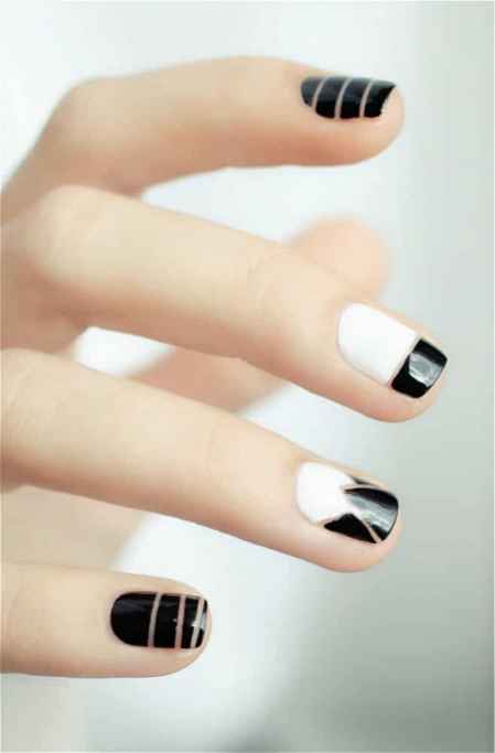 黑白相间设计的指甲油还蛮个性的,既有黑色的沉稳又又白色的清透,重点是显小手白嫩,而且这款非常显特别,不论是搭配艳丽的衣服还是休闲的运动服,都能显出你强烈的个人色彩来。