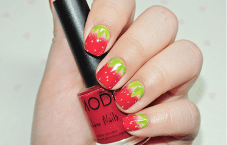 草莓美甲绝对是提亮气色的神奇!不论是小萝莉还是御姐,涂上这款美甲都会**心爆棚啊,而且这款美甲非常简单易学的哦!