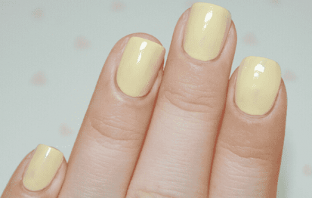 第一步:做美甲的第一步,应修剪指甲,这里建议的甲面为圆弧角的方块形。涂上底油,待底油彻底干掉后,涂上淡**甲油,照灯。