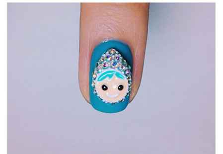 第三步:在无名指上刷上粘贴胶,粘上饰品娃娃,照灯60秒。