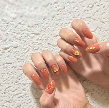 就一定会想到秋天,但是这种颜色的美甲却很少有人做。可以试试这种裸南瓜色,非常有特点,又不会太突兀,还很显手白,再用金色小饰物点缀,是不是有一种秋风落叶的感觉呢?