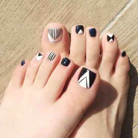 黑白搭配脚指甲油也很适合夏季选择,简约现代又时尚大气。