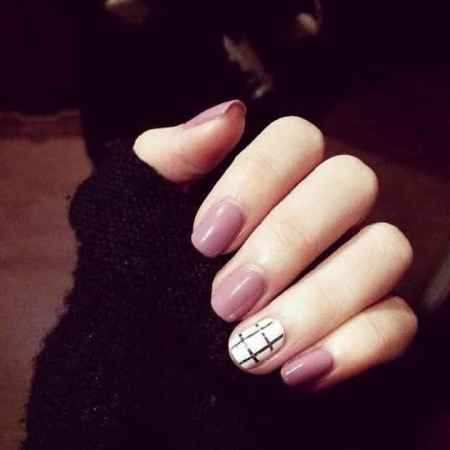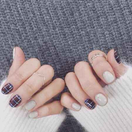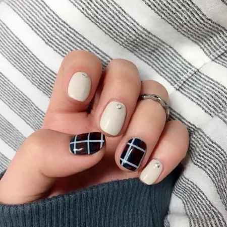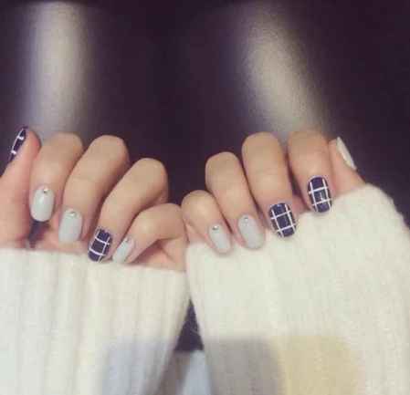 格子设计的美甲简单又能展现时尚范儿,与奶白色美甲搭配可有撞色美感了。