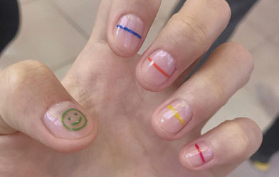 接下来就是超级简单的线条款,透明甲上画出不同颜色的线条,既简单又特别哦~