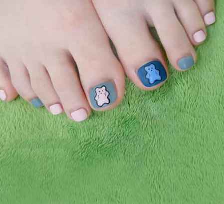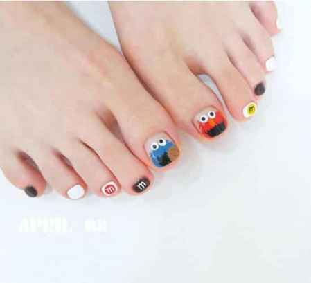 M豆中的公仔也出现在美甲图案中,小巧的脚趾头经过美甲后,仿佛像颗颗M豆一样,超有食欲呢~