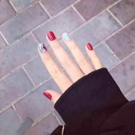 红色与奶奶灰跳色的这款美甲真好看,惊艳中带一点低调感,还能很好提亮手部光泽度,看起来更白更嫩,很适合现在年轻妹子选择。