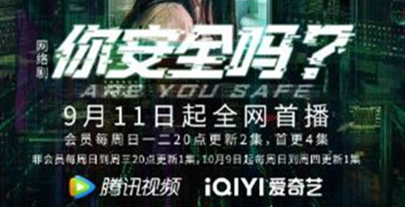 《你安全吗》9月11日起会员每周日一二20点更新2集,首更4集;非会员每周日至周三20点更新1集。
