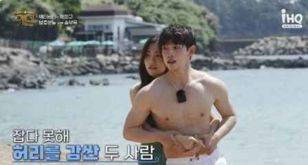 首播一开始,海边进行的第一次见面,所有出演者都穿着暴露身体的泳装登场,并大量慢动作镜头拍摄,且第一次的躲避球活动中,男出演者为了保护女出演者,近**接触并摸**的场面也被播出,第一集就有许多【Skinship (身体接触)】。