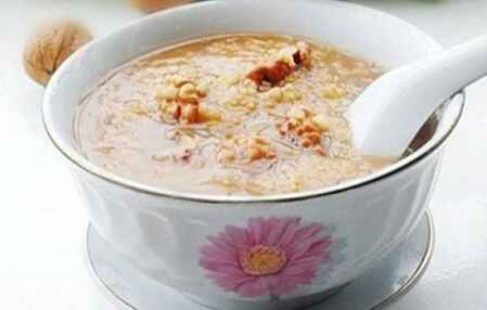 做法:将核桃仁捣烂同粳米一起煮成粥。